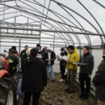 先日投稿して少し時間が経過したので、ラッキョウ圃場に行ってみると、蕾の先端が少し色ずいているのが確認できました。