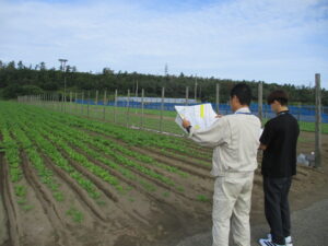 本日、秋晴れの下、8時半から坂井市秋作畑作調査を行いました。