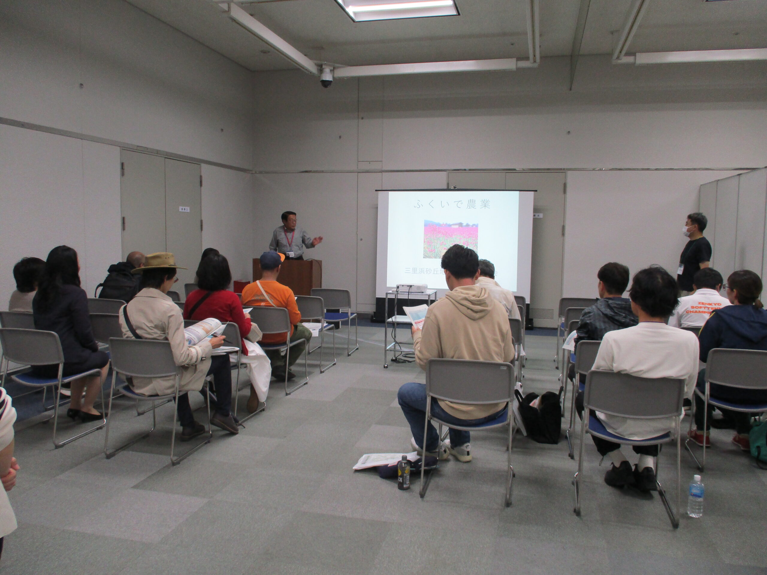 その一角に設けられた講演会場で、福井県の取り組みと、三里浜砂丘地の現状と課題について講義をしてきました。