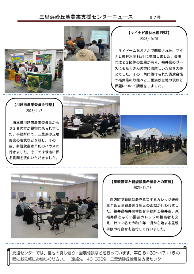 支援センターニュース 67号 - 2026年01月08日 | 産地の動き, 福井県内農業の動き