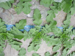 3列ある大根の葉が折り重なるように成長してました。
